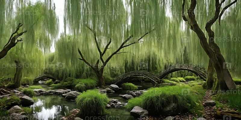 Whispering Willow Grove. Под древними ивами, чьи длинные ветви тянутся в серебряной реке, появляются крошечные двери. Феи, духи и лесные существа собираются здесь, делясь секретами и смехом