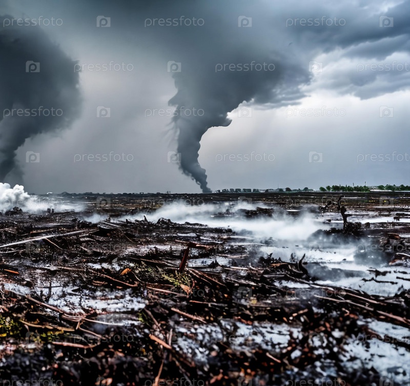 Чистая сила торнадо, сосредоточенная на его вращающемся движении, когда он разрушает ландшафт