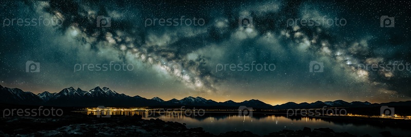 Чудо звездного ночного неба в отдаленном месте с силуэтом далекой горной цепи, добавляющим глубины изображению