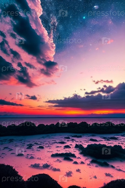 Небесная безмятежность. Красота звездного неба на закате, запечатлевшая сложные узоры облаков и мягкие оттенки сумерек в завораживающей композиции, которая объединяет чудеса природы от заката до ночи