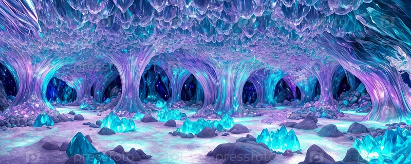 Кристальная пещера, подземный мир, наполненный мерцающими кристаллическими образованиями и радужными оболочками