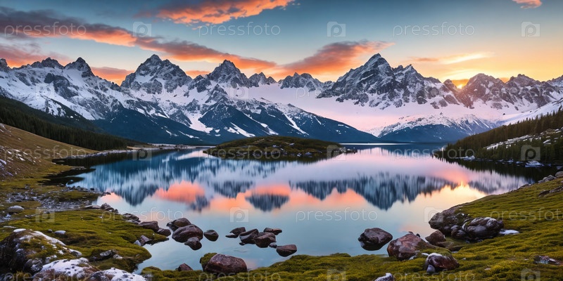 Serene Mountain Vista. Запечатлейте захватывающий восход солнца над заснеженными горами