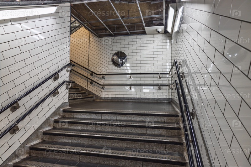 Интерьер лестничной клетки станции лондонского метро с чистыми плиточными стенами и промышленным дизайном
