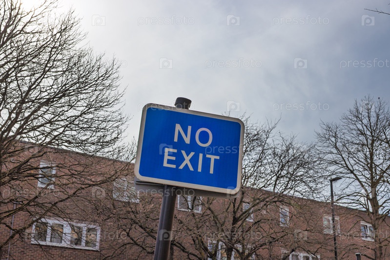 Дорожный знак с сообщением «Выезда нет», устанавливаемый на городской улице для обозначения тупика или ограниченного доступа