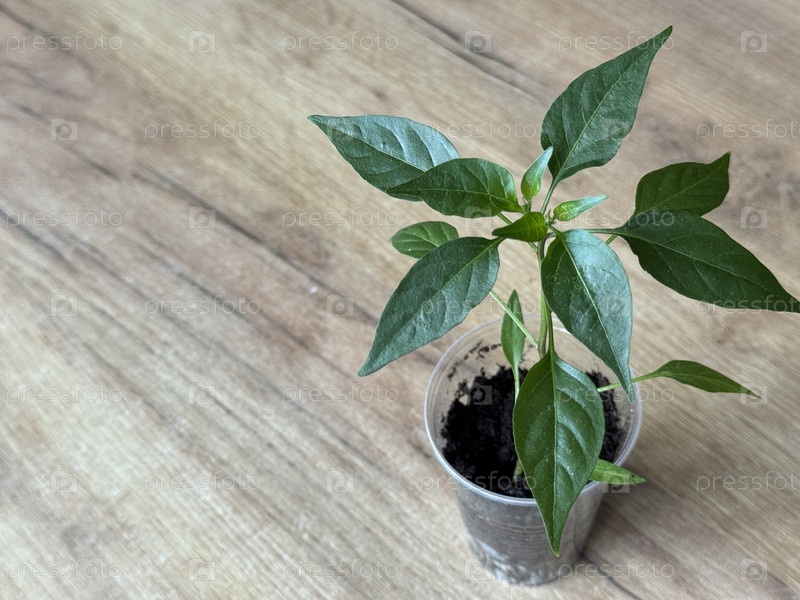 Рассада перца в пластиковом контейнере. Подготовка к садовому сезону. Крытый огород
