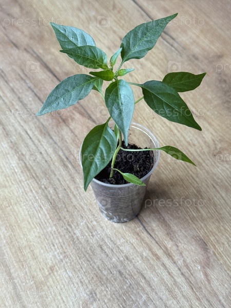 Рассада перца в пластиковом контейнере. Подготовка к садовому сезону. Крытый огород