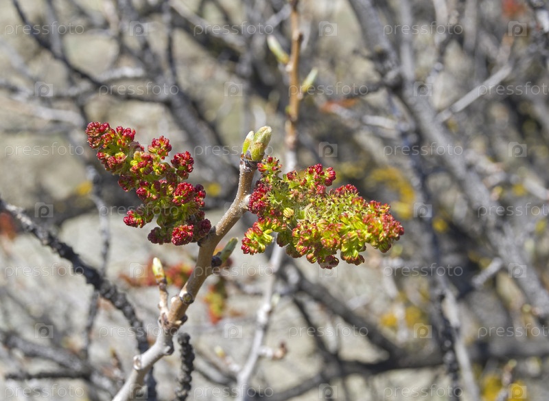 Цветы дикой фисташки (лат. Pistacia atlantica). Мыс Меганом, Крым, апрель