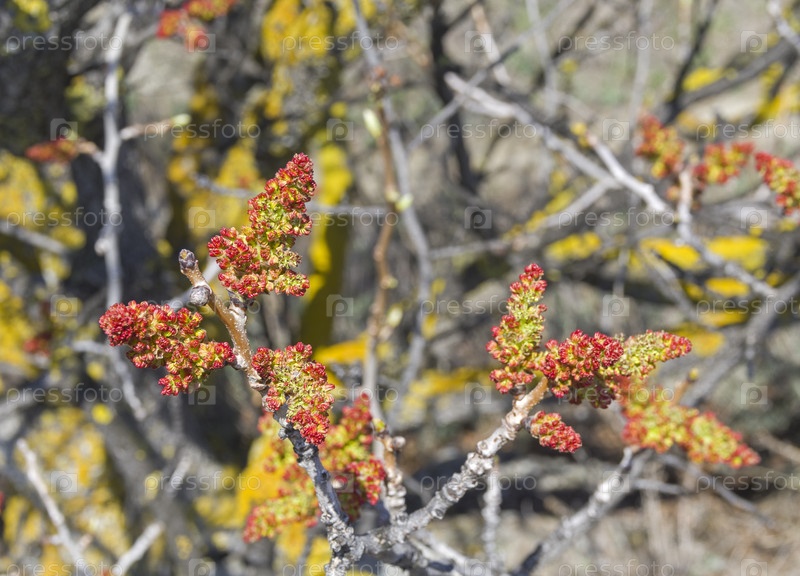 Цветы дикой фисташки (лат. Pistacia atlantica). Мыс Меганом, Крым, апрель