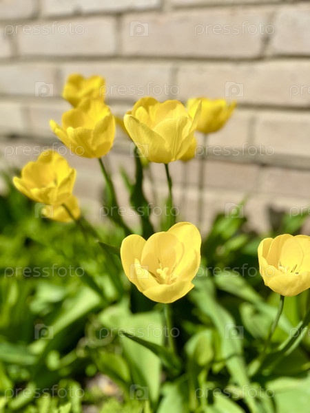 цветы на фоне кирпичной стены