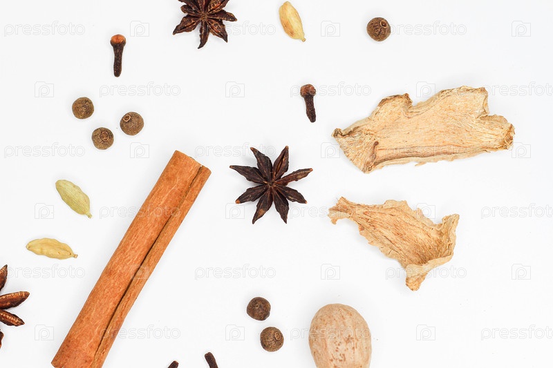 Набор для глинтвейна. Набор специй для глинтвейна на белом фоне