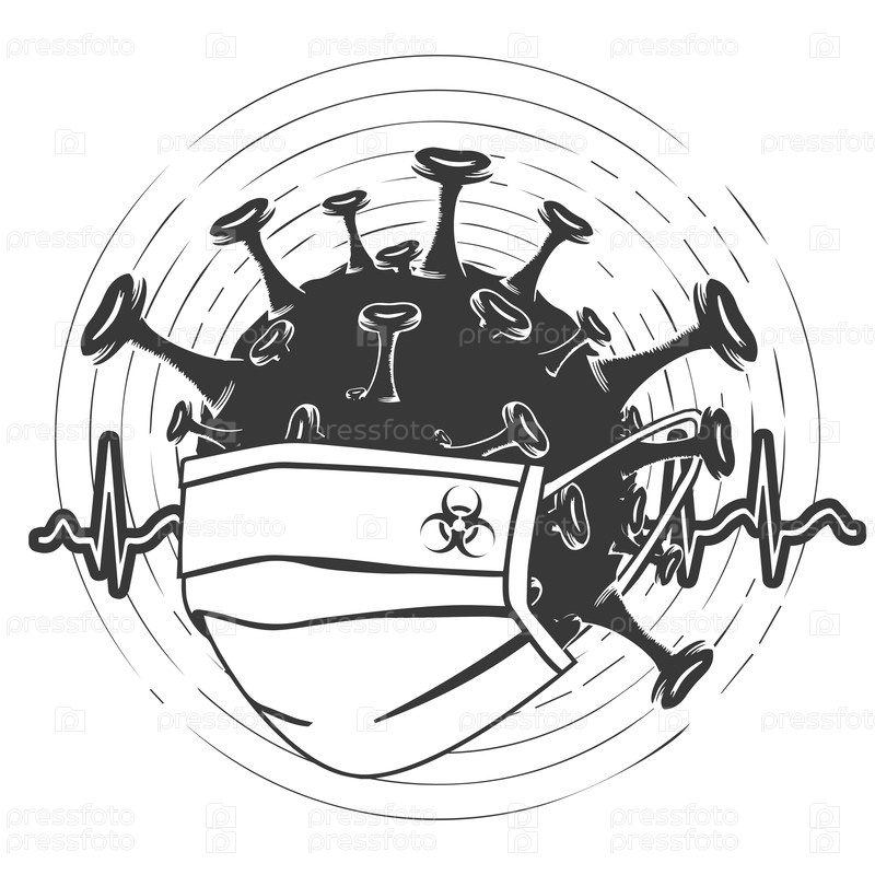 Символ ковид 19 в медицинской маске с символом биологической опасности