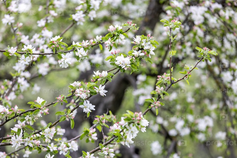 Россия. Москва. Вид на яблоневый сад весной. Russia. Moscow. View of the apple orchard in spring