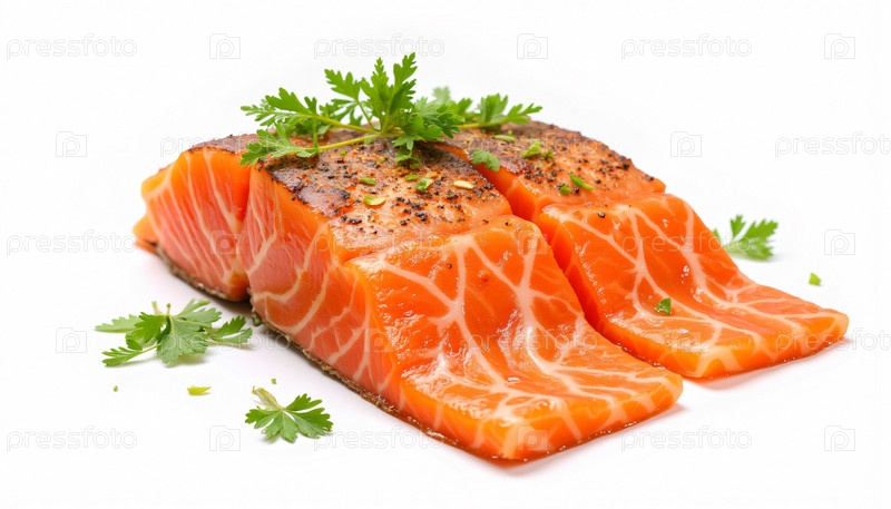 Свежее сырое филе лосося с травами на белом фоне