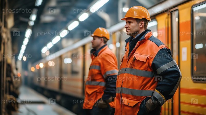 Рабочие монтеры в депо метрополитена