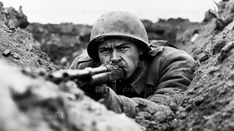 Советский солдат времен второй мировой войны в окопах