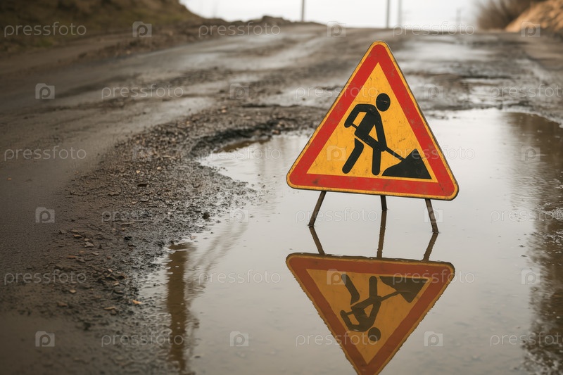 Дорожный знак ремонтные работы. Ямочный ремонт дороги