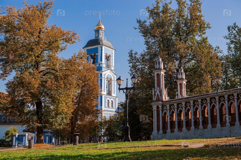 Россия, Москва. Фигурный мост в Царицыно в Москве осенним днем. Царицынский парк — одна из главных туристических достопримечательностей Москвы