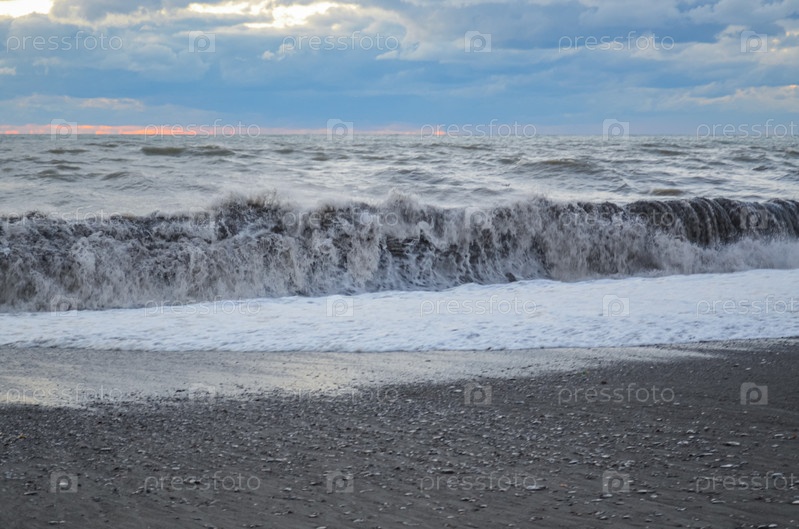 Россия, Краснодарский край, Сочи. Ноябрь 2024. Шторм на море. Пляже Ривьера