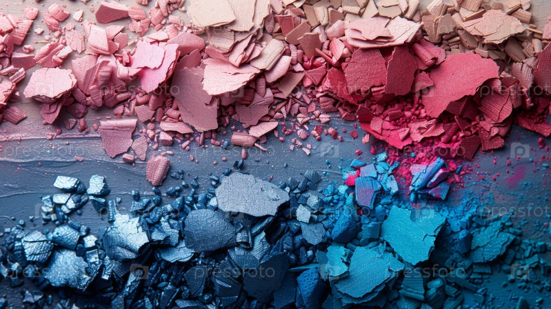 Рассыпчатые синие и розовые тени для век создают яркую, красочную текстуру на этом художественном фоне