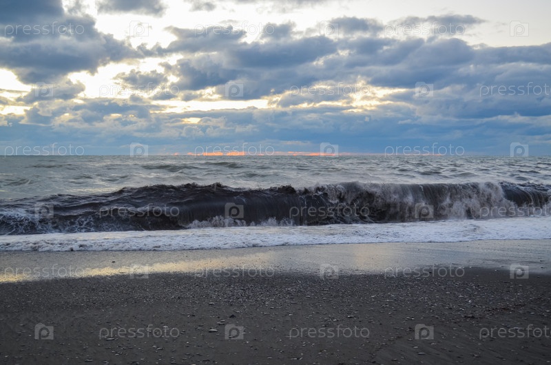 Россия, Краснодарский край, Сочи. Ноябрь 2024. Шторм на море. Пляже Ривьера