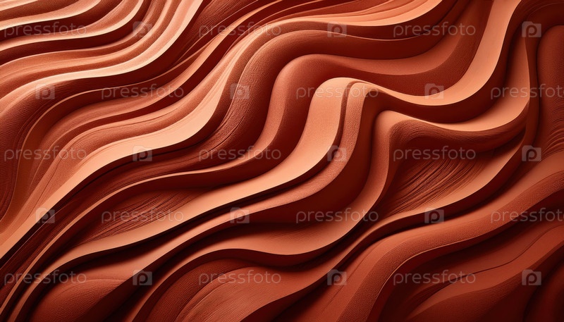 Абстрактные волнистые оранжевые и красные узоры, создающие фактурный и художественный фон. Шоколадно-коричневая абстрактная поверхность