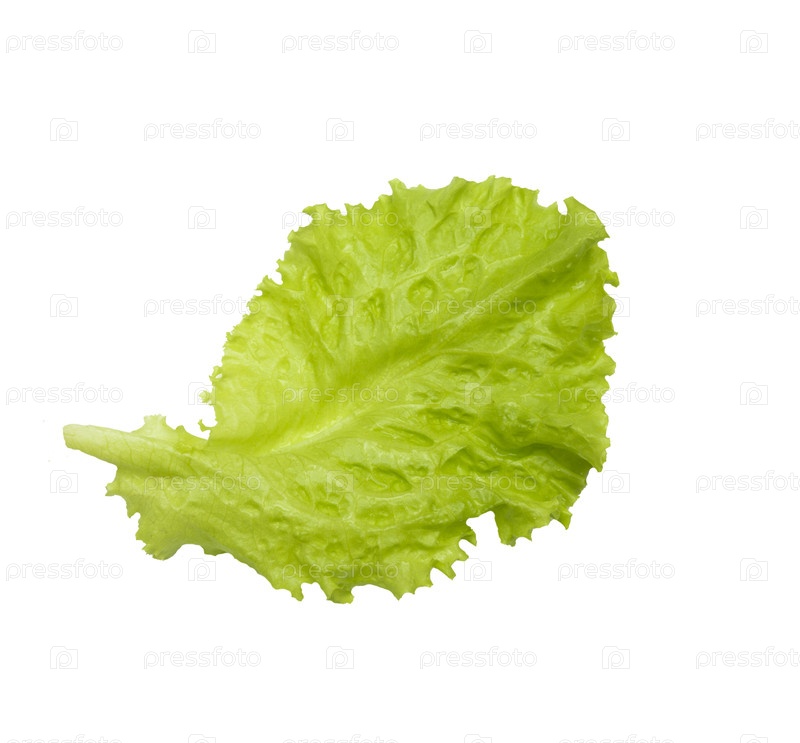 Зеленый лист салата на белом фоне. Изолированный. Свежий лист салата - это здоровая пища