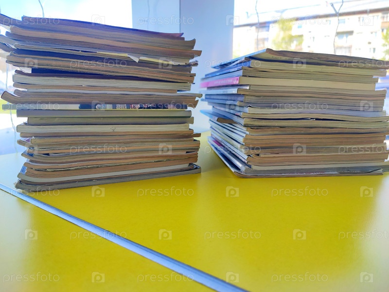 Стопка журналов на столе. A stack of magazines on the table