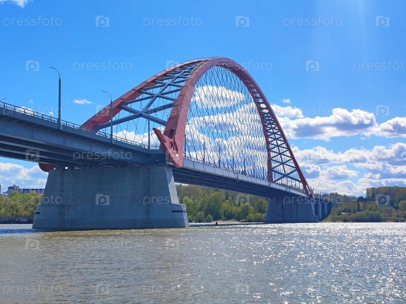 Бугринский мост в городе Новосибирск через реку Обь, весна. Bugrinsky bridge in Novosibirsk across the Ob River, spring. Bugrinsky桥在新西伯利亚横跨鄂毕河,春天。