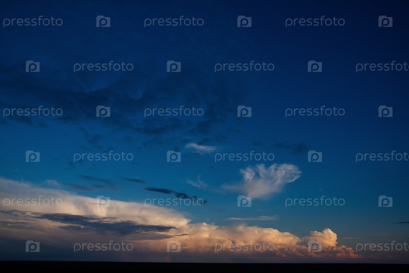 Центральный Казахстан. Необычно мрачное драматическое на закате с темными облаками