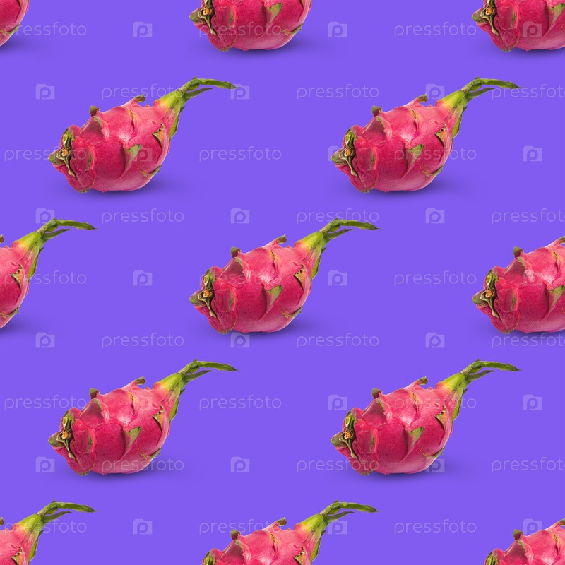 Узор из плодов питахайи на фоне цвета черники