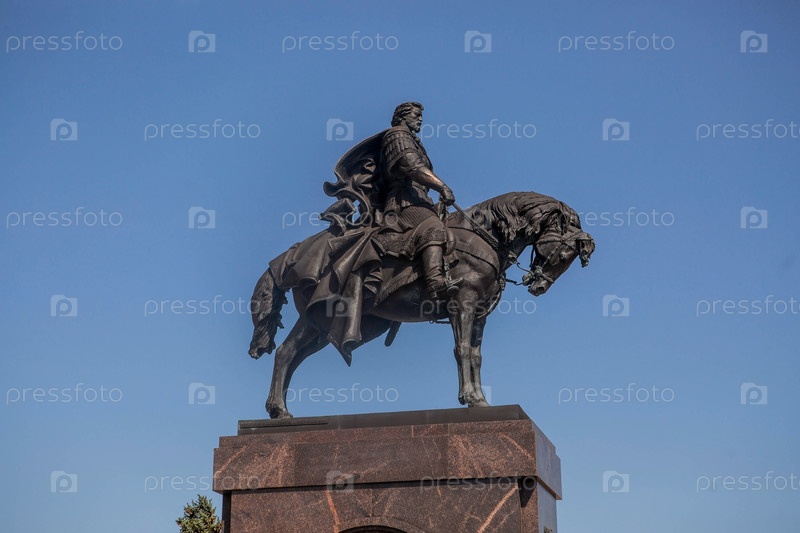 Собор Святого Александра Невского и памятник Невскому на Стрелке. Россия, Нижний Новгород, 17 августа 2023 г