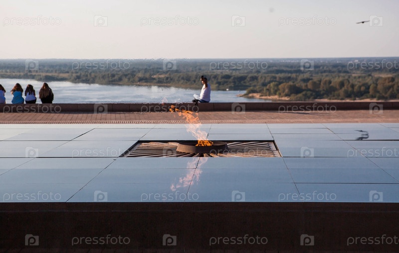 Россия, Нижний Новгород, 17 августа 2023 года. Мемориал Победы в Нижегородском Кремле. Вечный огонь на территории Нижегородского Кремля
