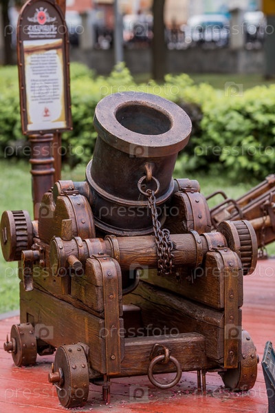 Россия, город Рязань. Инсталляция в виде мортиры и пушки на лафете. Парк Рязанского Кремля