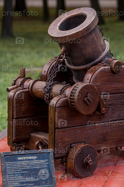 Россия, город Рязань. Инсталляция в виде мортиры и пушки на лафете. Парк Рязанского Кремля