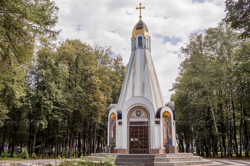 Россия, Рязань, 8 августа 2023 г. Часовня в честь 900-летия Рязани (1995 г.) в мемориальном сквере у Соборной площади