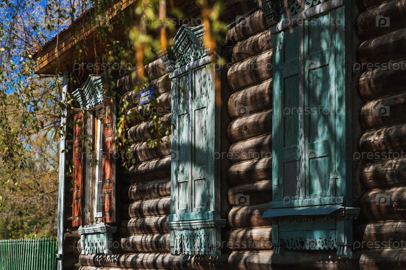Окно с красивыми резными наличниками. Русская культура. Тверь, Россия, май 2025 г