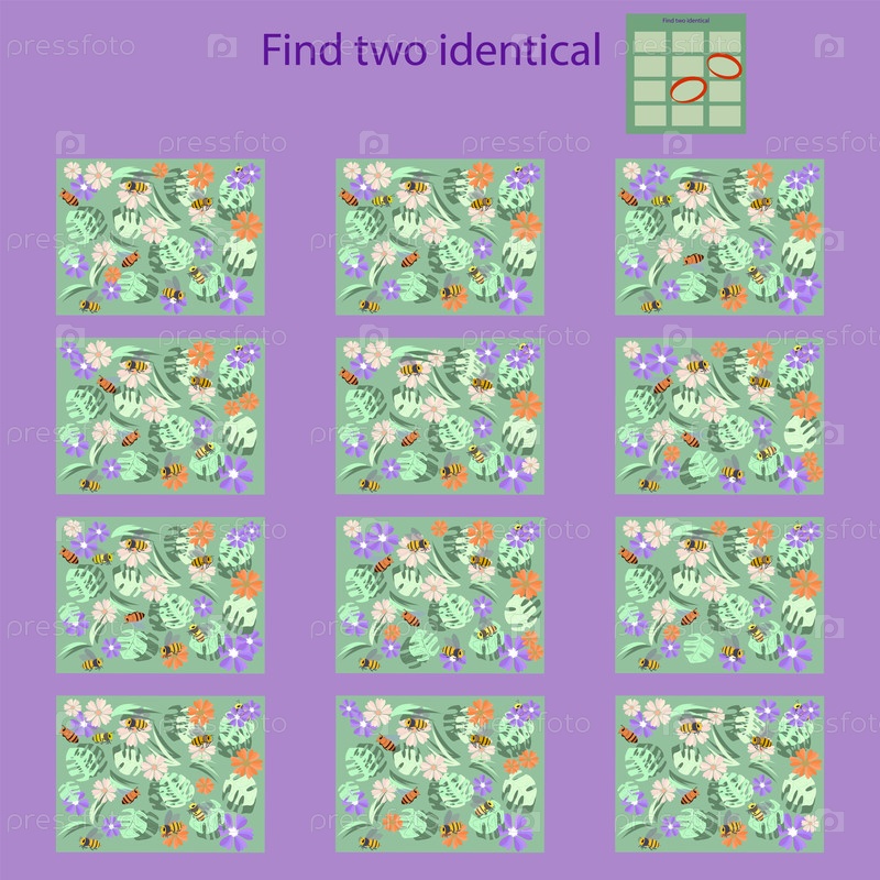 Найдите две одинаковые картинки с ребусами пчелы для детей до 10 лет