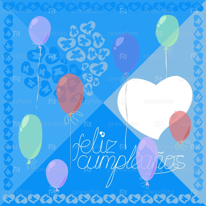 Поздравительная открытка с разноцветными шарами с поздравительной надписью на испанском языке с днем рождения