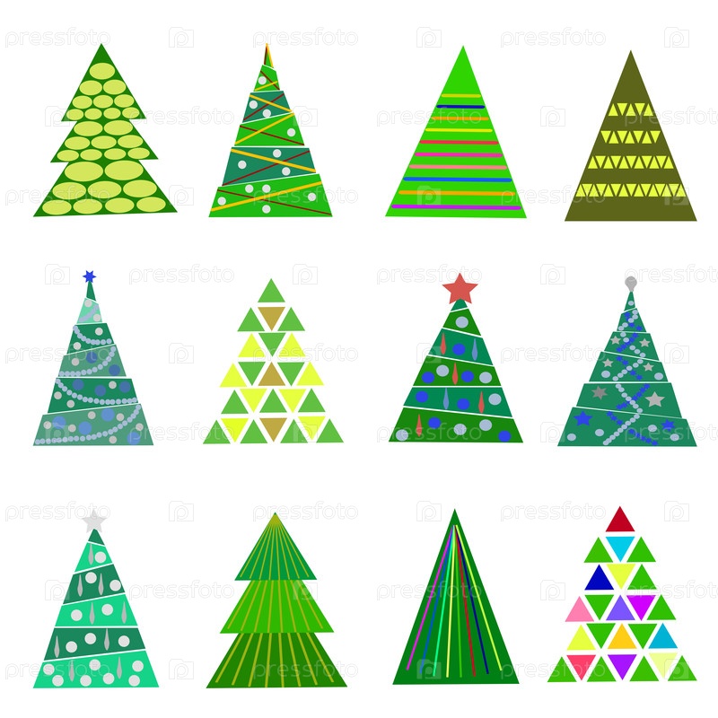 Набор нарядных елок с гирляндами и елочными игрушками