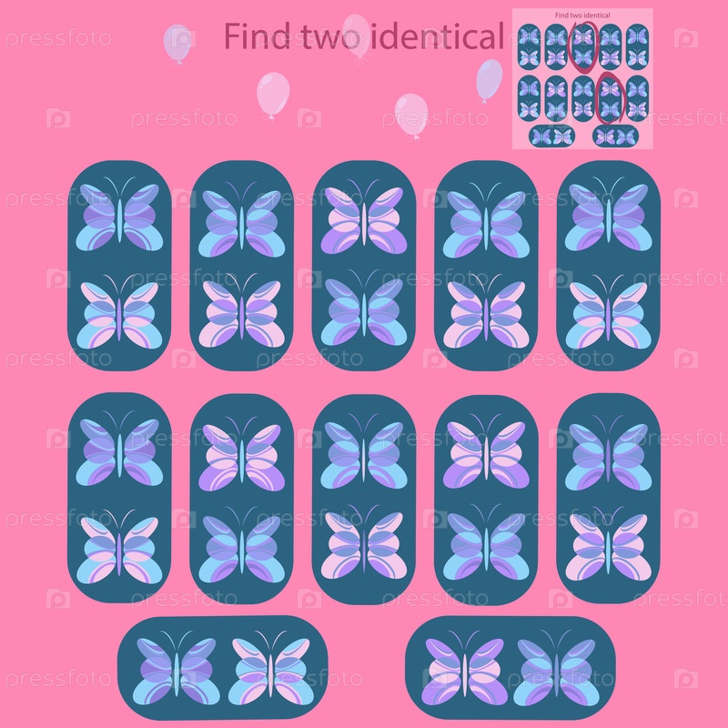 В головоломке «Бабочка» для детей до 6 лет найдите 2 одинаковые картинки