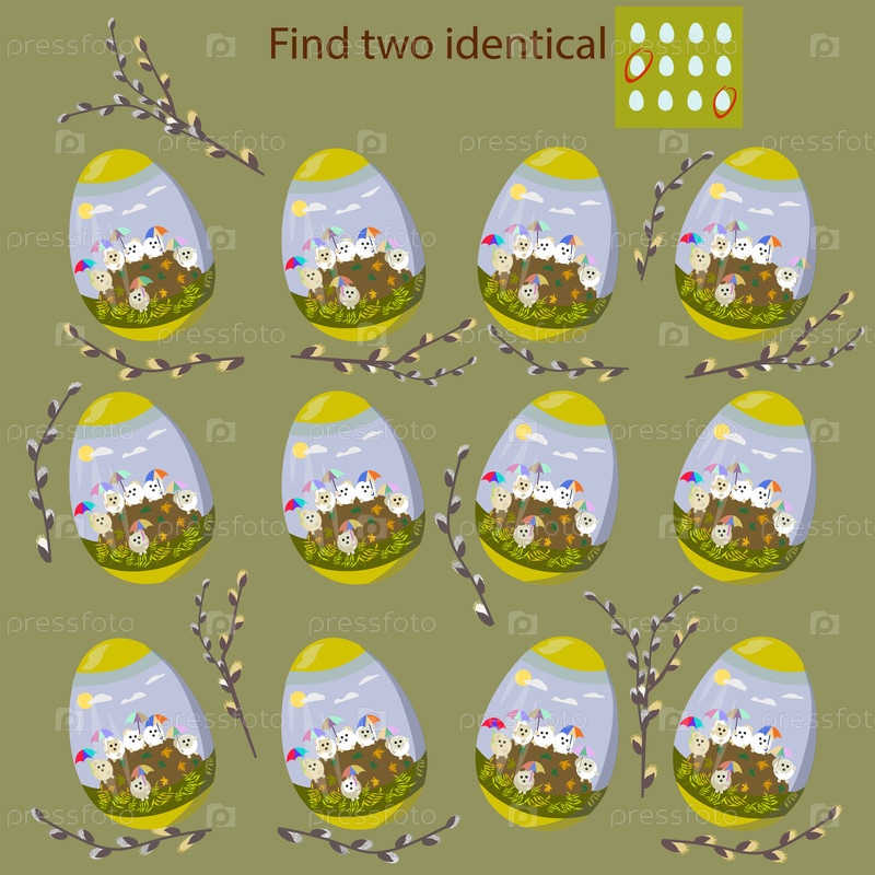 Для детей до 10 лет: найдите два одинаковых пасхальных яйца