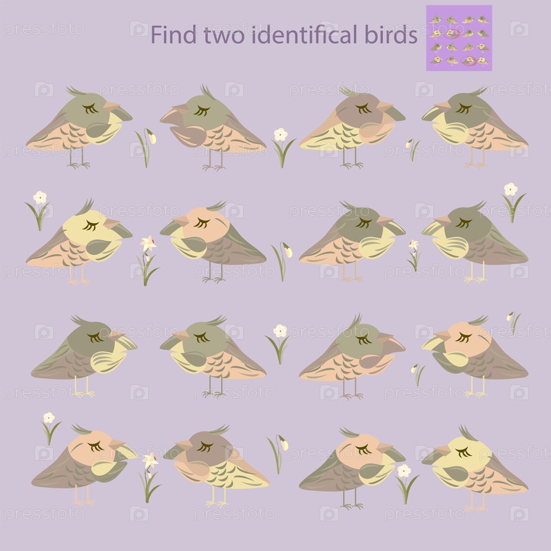 Для детей до 10 лет: найдите двух одинаковых птиц