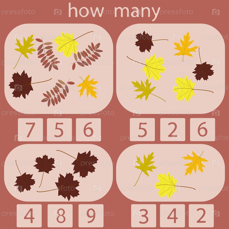 Посчитайте сколько осенних листьев на картинке-ребусе для детей до 6 лет