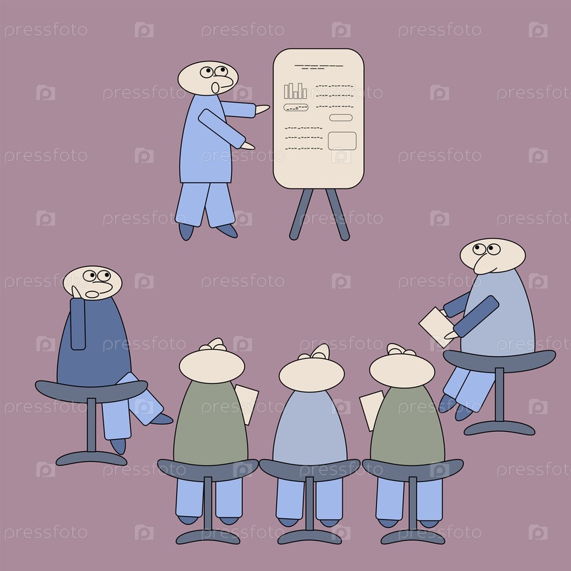 На тренинге преподаватель объясняет у доски перед аудиторией