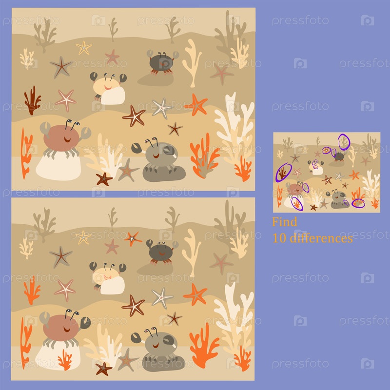 Найди 10 отличий в морской флоре и фауне ребус для детей до 6 лет