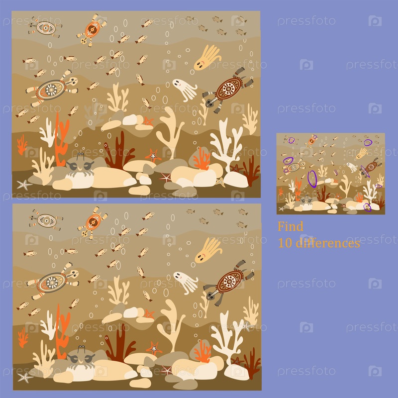 Найди 10 отличий в морской флоре и фауне ребус для детей до 8 лет