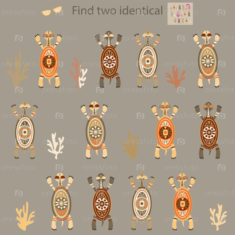 Ребус для детей до 8 лет, где нужно найти двух одинаковых черепашек