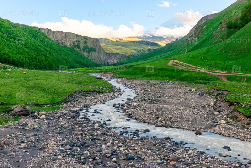 Живописный пейзаж с горной рекой в долине реки Эмануэль. Кавказ