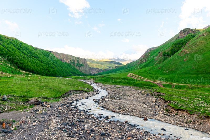 Живописный пейзаж с горной рекой в долине реки Эмануэль. Кавказ