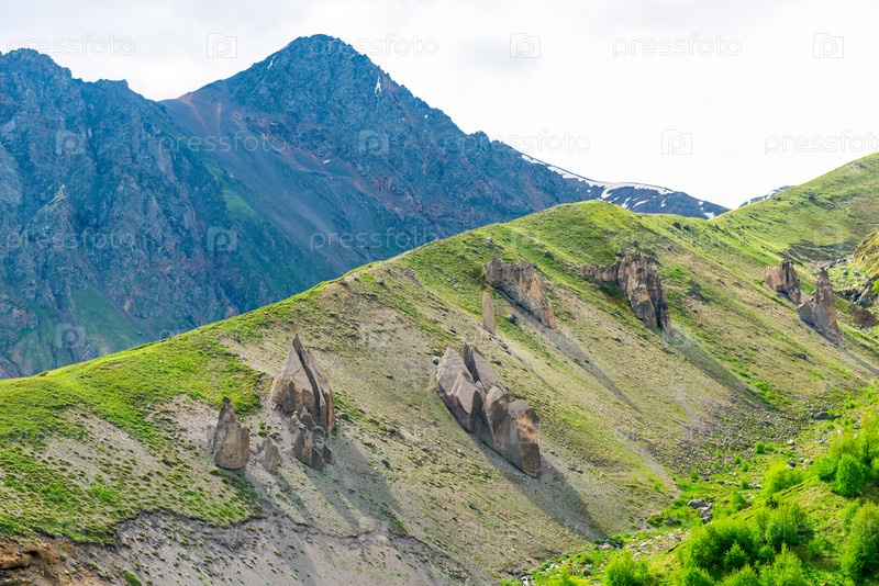 Живописный пейзаж с горной рекой в долине реки Эмануэль. Кавказ